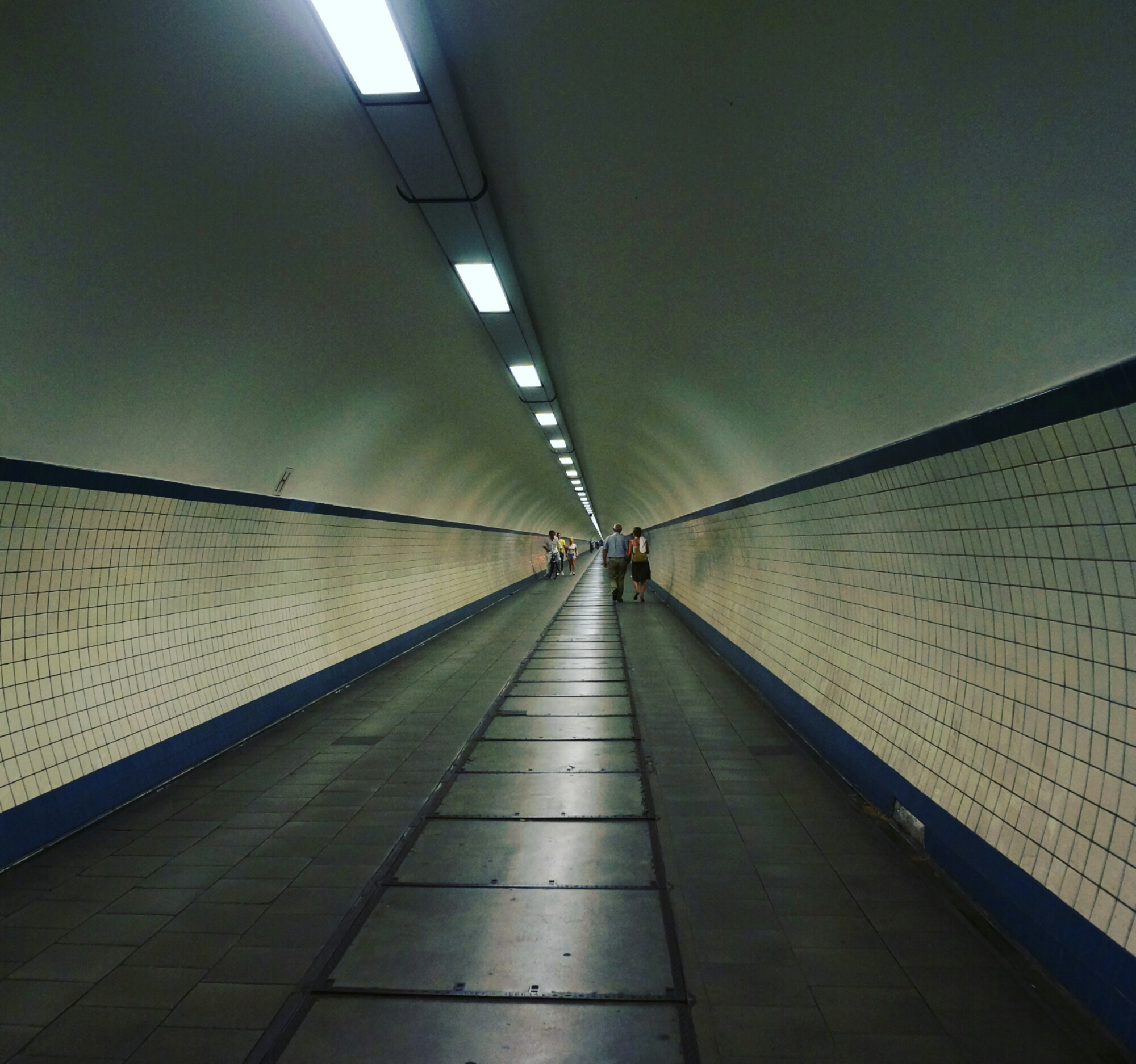 Så på kvällen träffade vi Mathilda och Dries. För att ta sig in till stan från campingen, behöver man ta sig över – eller rättare sagt under floden Schelde. Enda sättet förutom att ta en taxi – är att gå eller cykla genom en 550 m lång tunnel. Men först åker man lång ner under jorden med två långa rulltrappor, känns sådär..