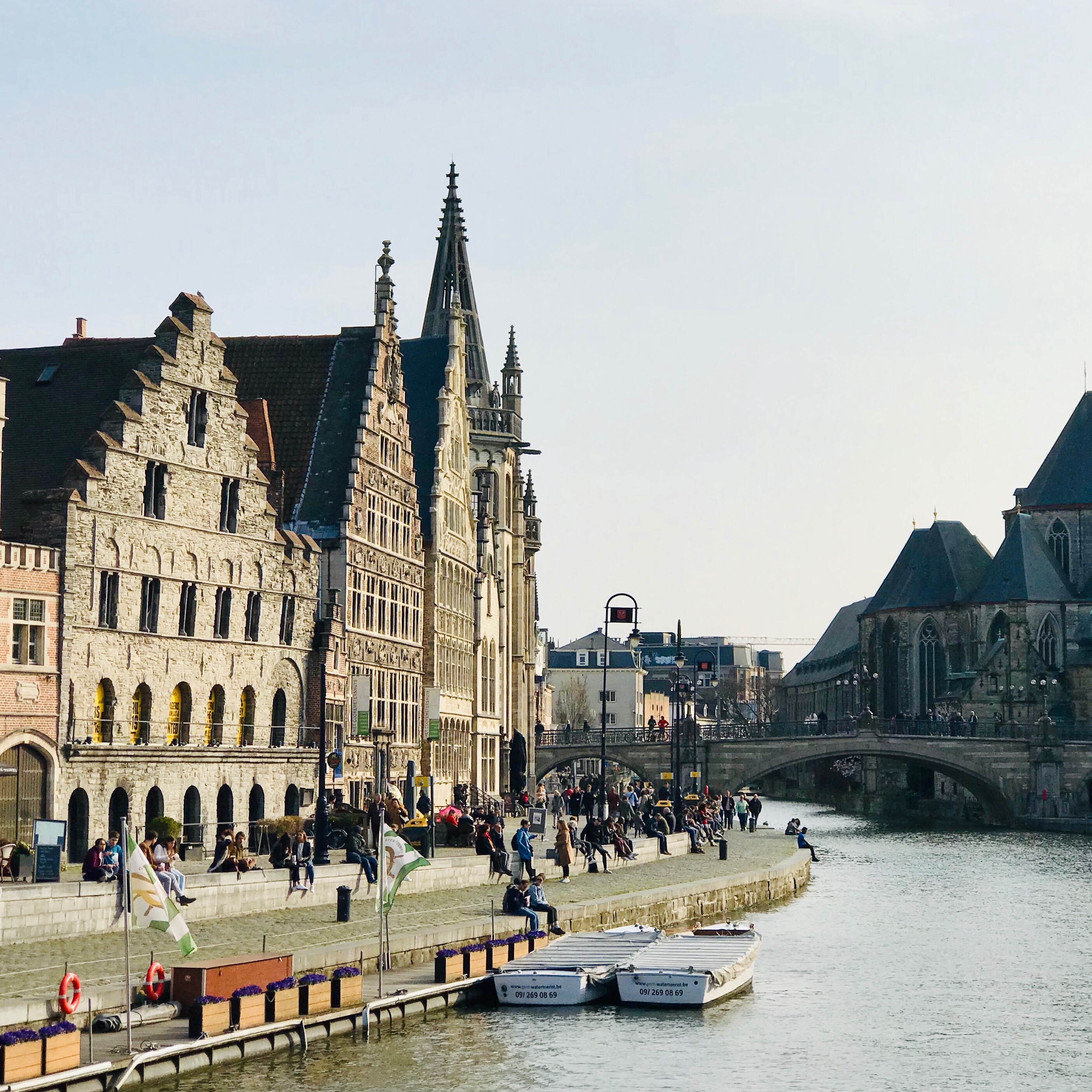 På söndagen var planen att åka till Brygge som ligger 2,5 timme bort med tåg. Men – eftersom tjejerna kom hem kl 7.00 på morgonen, rätt slitna… så valde vi att åka till Gent istället. Gent ligger bara 50 minuter från Antwerpen med tåg. Det var ett riktigt bra val, vilken stad! Så vackert där – gamla slottsliknande hus.