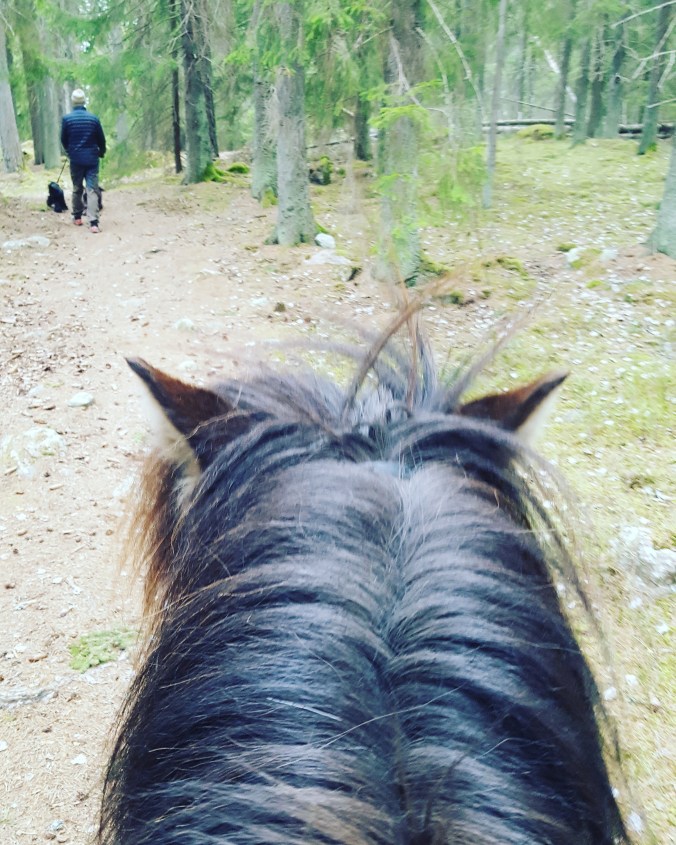 Ridit Ui en stund på volten och i skogen. Mysigt att umgås med honom. Idag kände han igen mig och kom fram till mig i hagen – följde efter. Det kändes bra – man vill ju inte vara en främling..