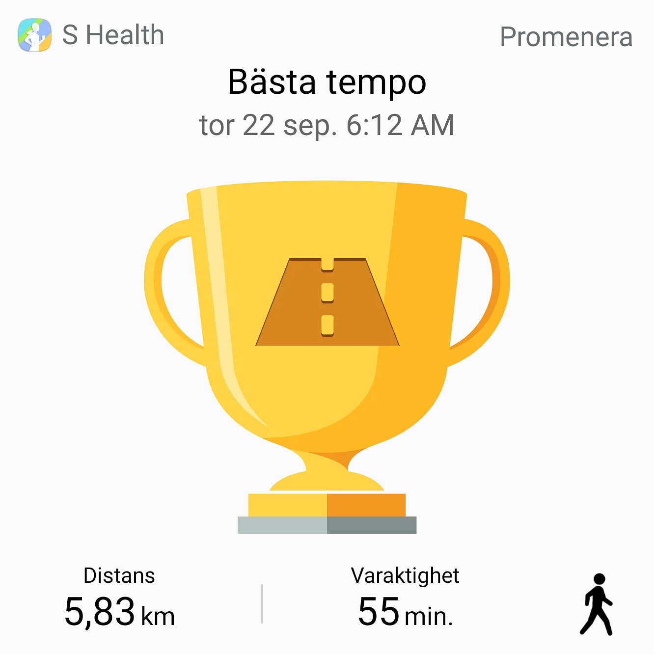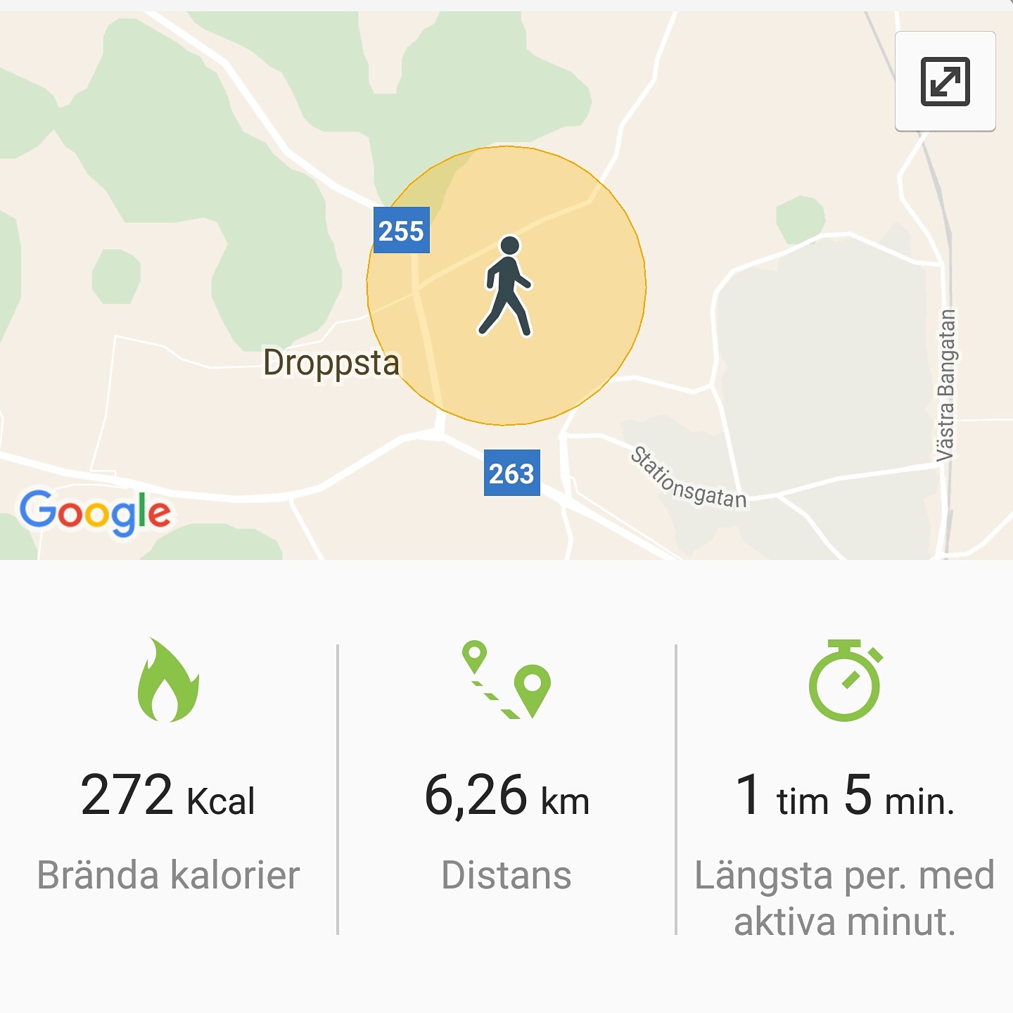 När vi gick och småpratade som vi brukar göra om allt ifrån sånt vi läst, till livet i stort – så sa S HEALTH att vi höll ett bra tempo, 6,3 km/timme. Det ville vi inte förlora – så efter en micropaus med fotograferande – bestämde vi oss för att jogga en bit. Jag har aldrig varit en joggare på grund av min astma. När jag anstränger mig för hårt, t ex springer- så får jag svårt att andas. Men om man börjar i det lilla, springer korta sträckor – så kanske man kan komma över den barriären? Det funkade bra idag i alla fall. När jag kom hem var jag sjöblöt. Till saken hör att vi också börjat gå baklänges på vår grusväg här hemma. Det drog ner tempot men kändes bra på fram – och baksidan av låren!