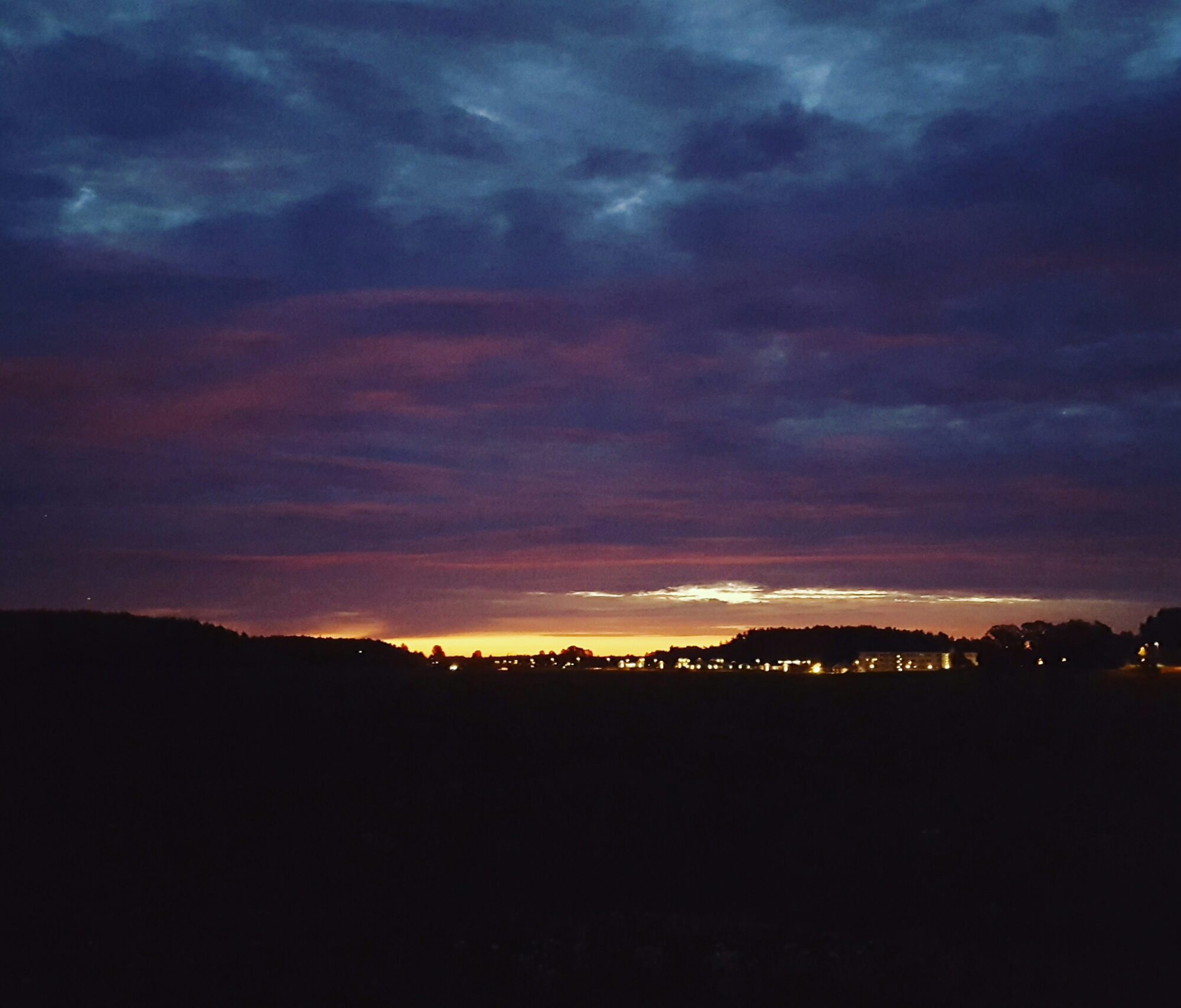 Så här vackert var det idag. Fast man fotar samma motiv, så skiljer det sig åt från dag till dag.. Imorse hade någon dragit penseldrag i vackra färger över himlen.