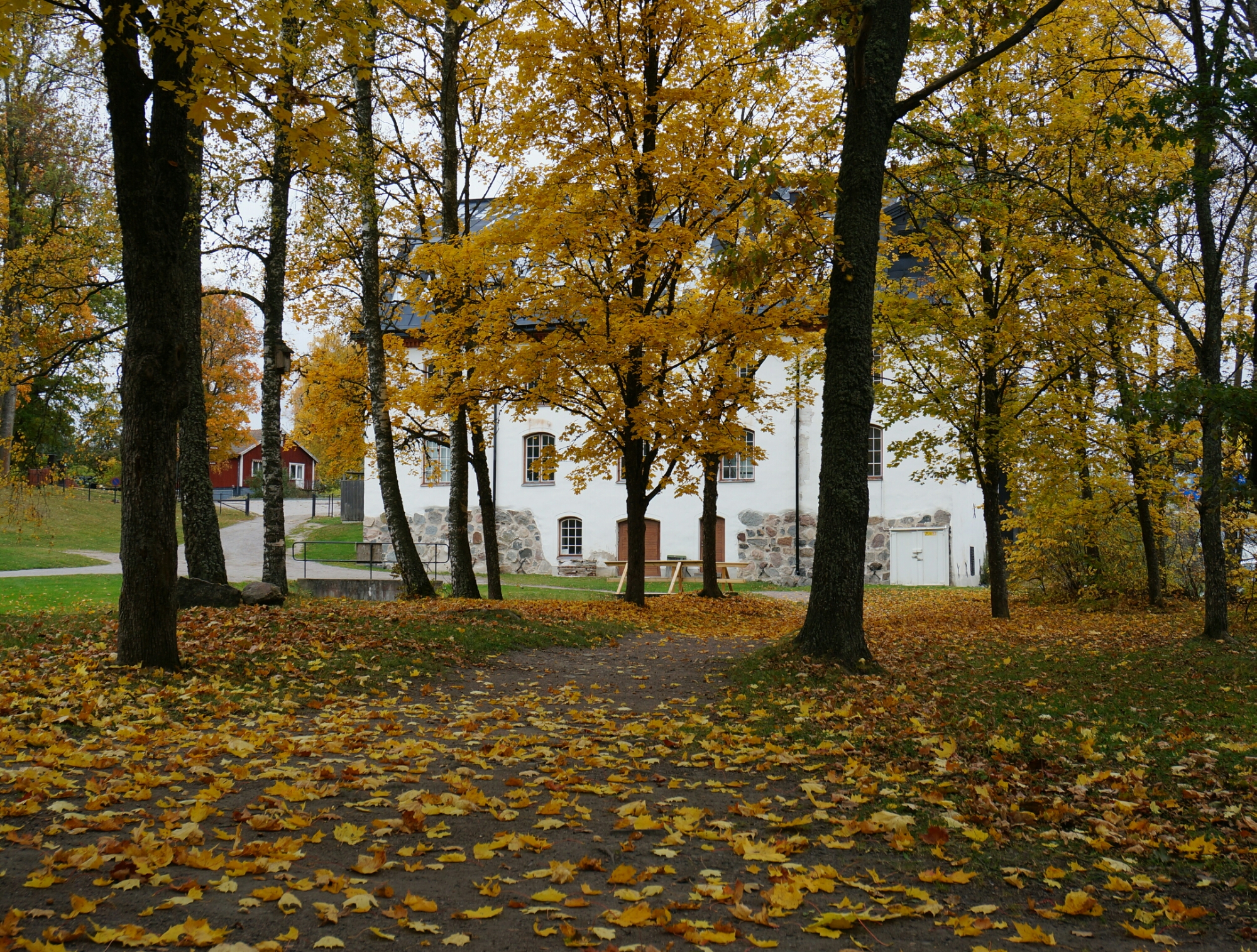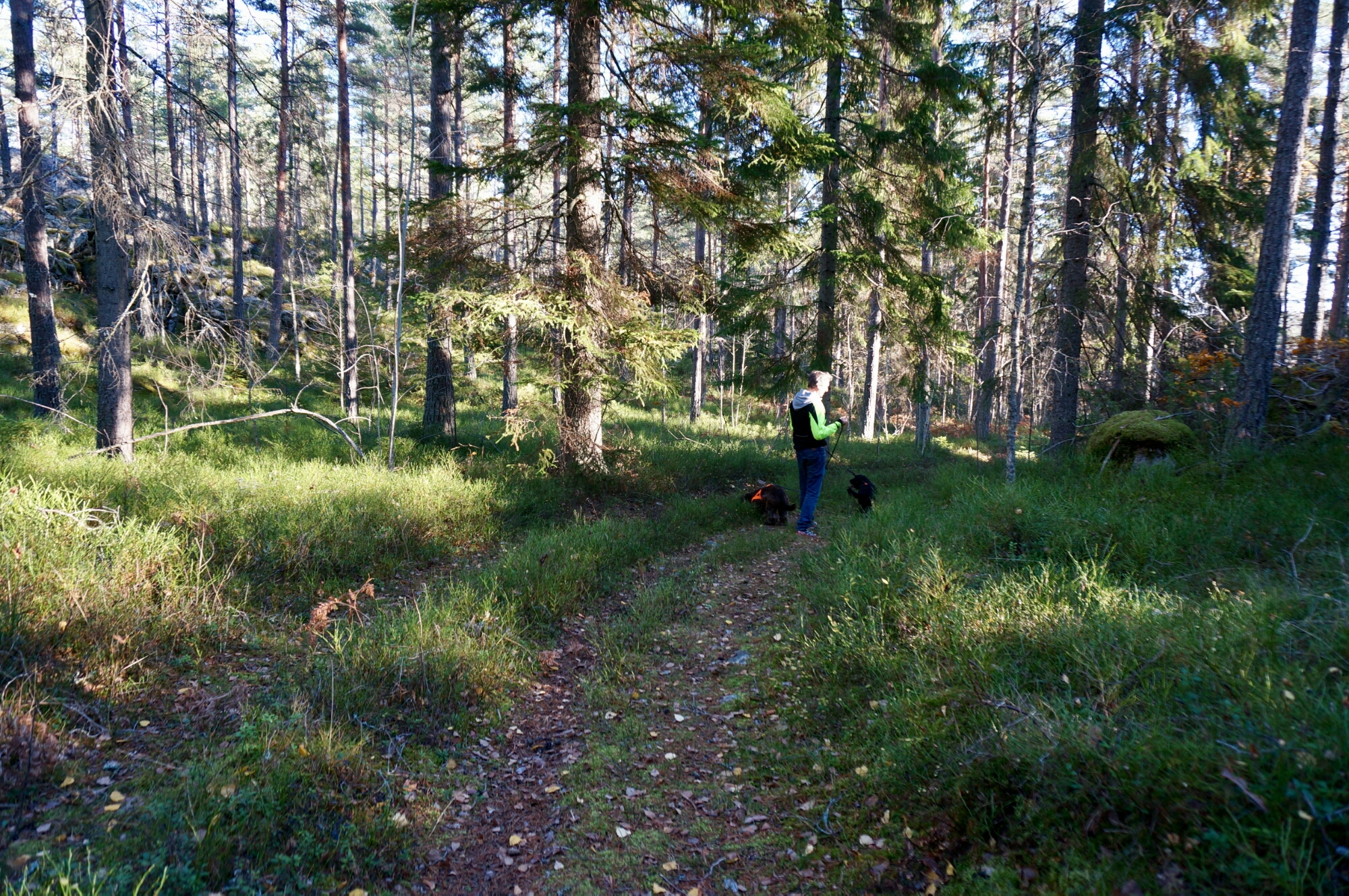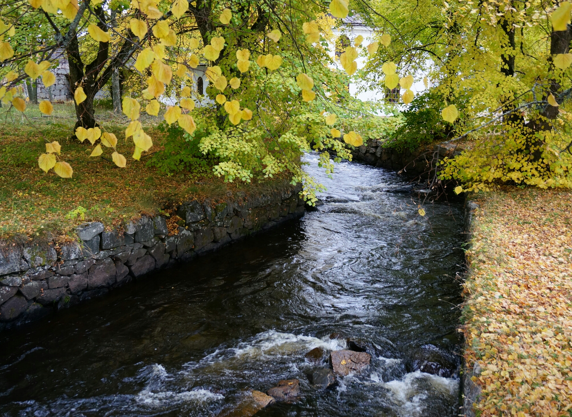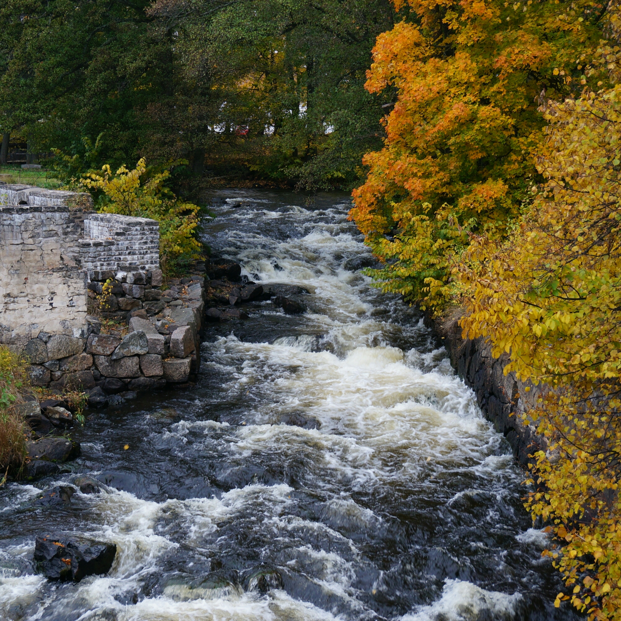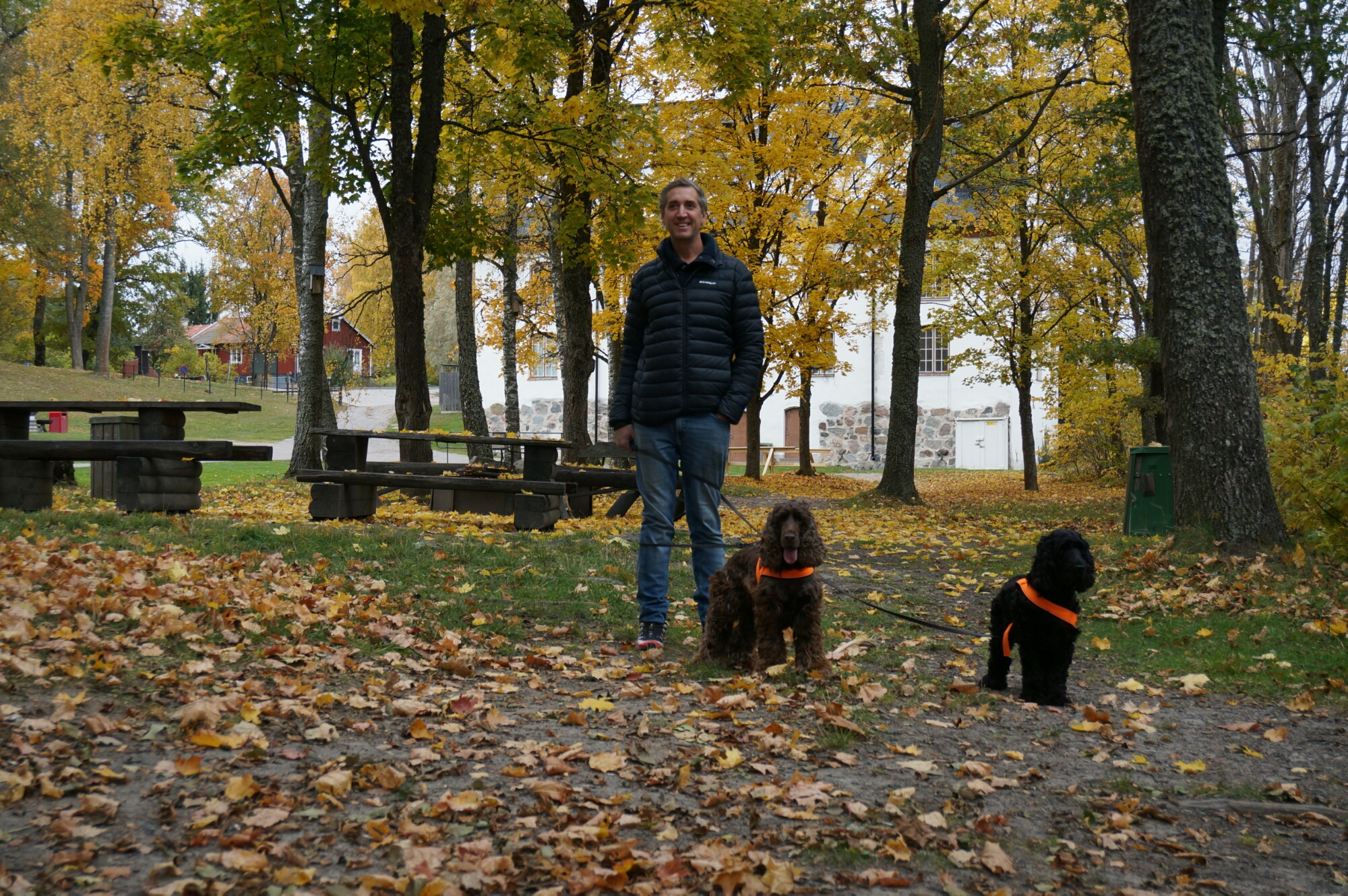 Igår gjorde vi en utflykt till Ulva kvarn, vi tänkte ta en fika där och jag ville fota höstmiljöer. Vi packade in hundarna i Peugeoten och styrde kosan norrut. Lönnlöven sprakade i vackra färger och eftersom det knappt regnat under hösten så var det torrt och fint i marken.