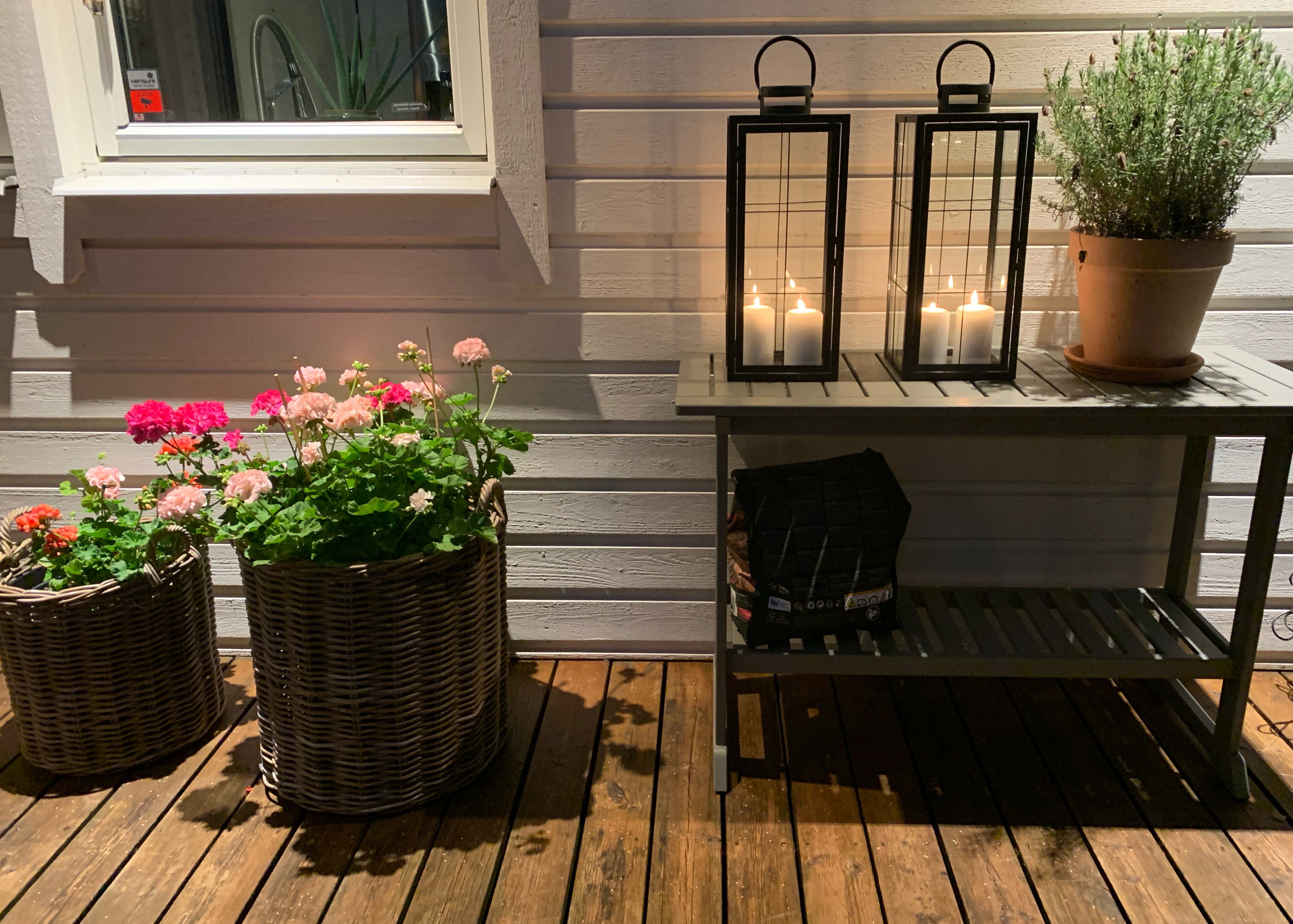 Sen möblerade vi om på verandan – det blev jättemysigt! Nu är vi redo att möta hösten på vår härliga uteplats.