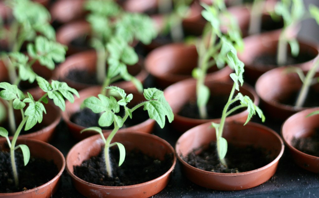 Senaste nytt på odlingsfronten – i år satte vi busktomater och de växer väldans långsamt tycker jag. Men de blir fina hur som.