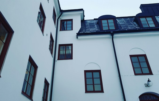 Ett rum med utsikt.Mitt rum, jag sov ovanligt bra för att inte sova hemma.. Imorse var himlen alldeles rosa, vilken utsikt.