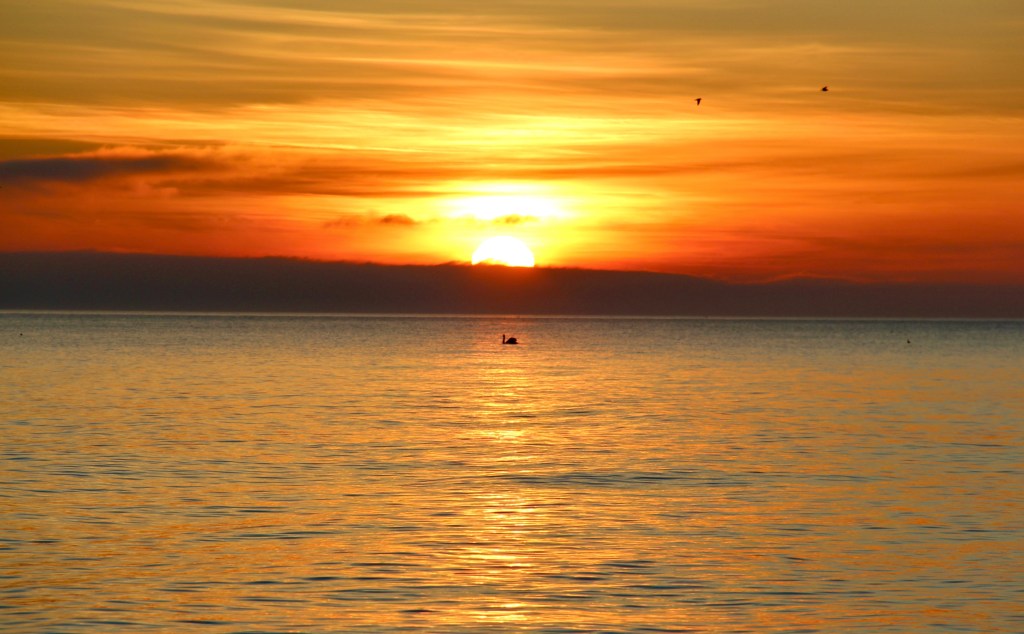 Imorse var vi uppe med tuppen och kollade soluppgången. Det var galet vackert och rofyllt. Just som jag skulle fota solen kom en svan glidande förbi – ibland har man tur..