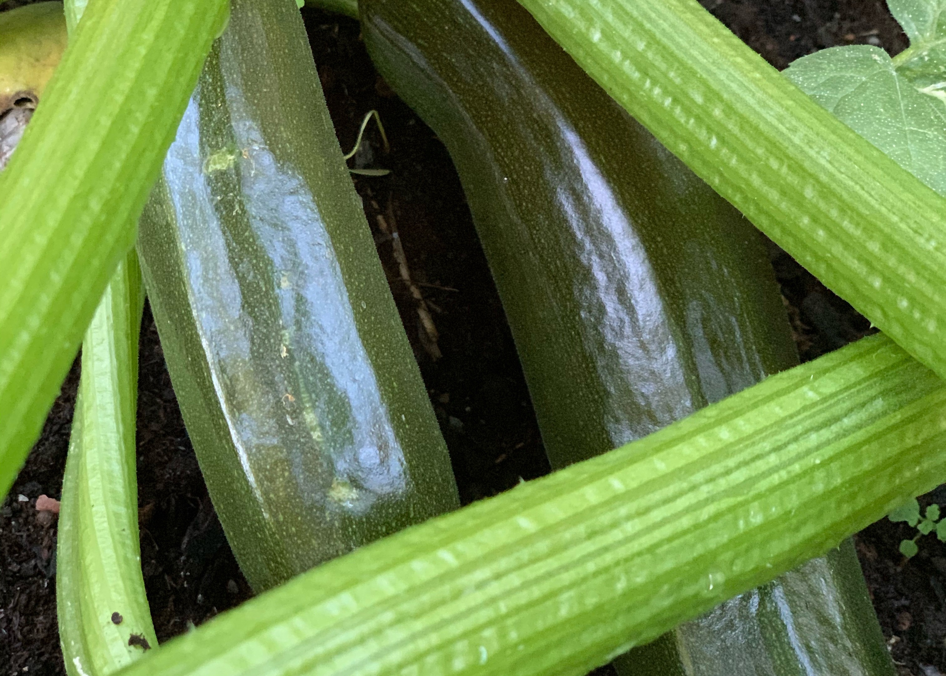 Vi är i alla fall självförsörjande på sallad, vi har två olika sorter. Sen är squashen färdig, vi har också gurka på gång. Det här är livskvalité om något!
