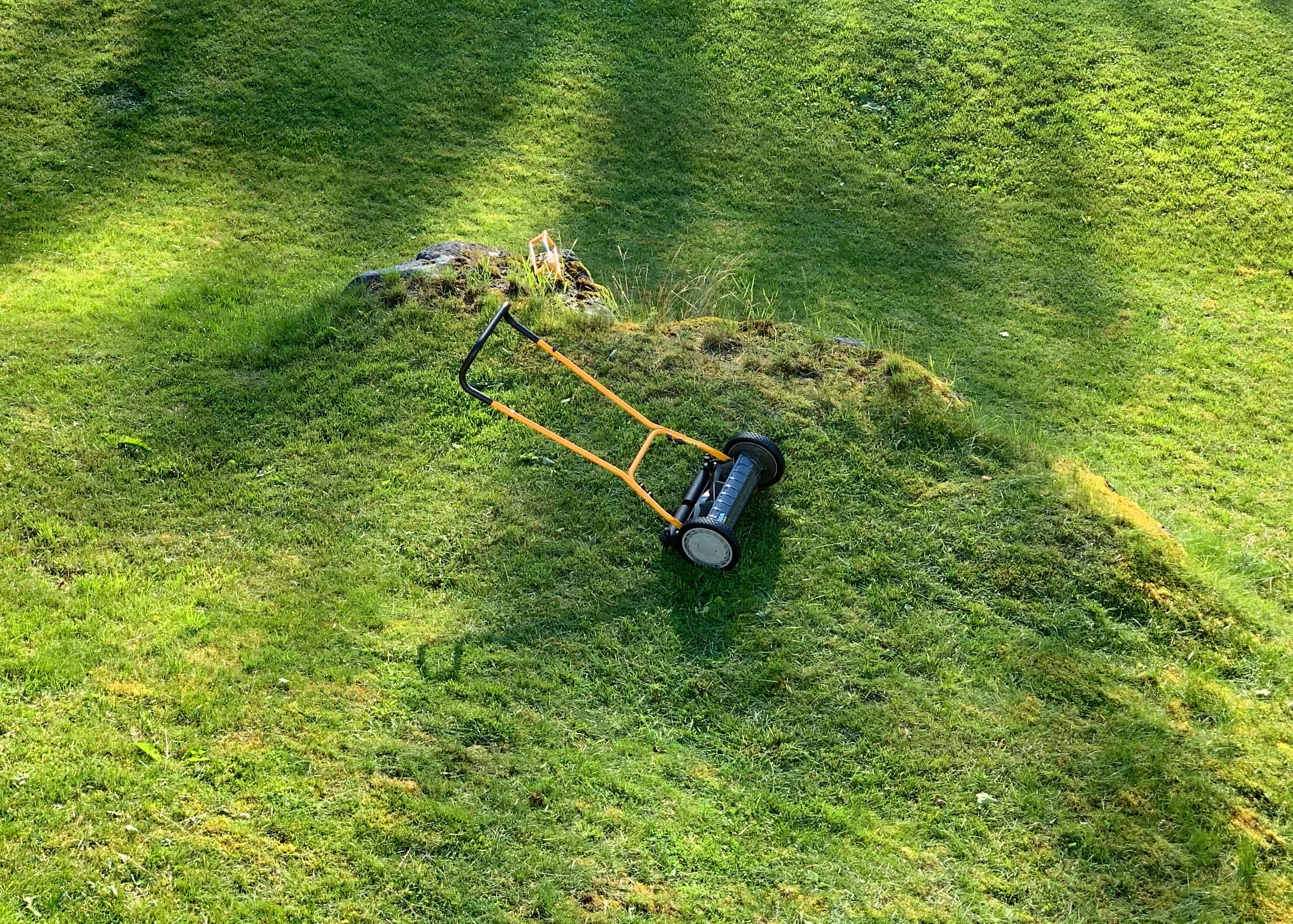 Sen har vi blivit med ny gräsklippare! Vår Klippo (ett år gammal) klarade inte lutningen på tomten, så vi köpte en Stiga handgräsklippare.