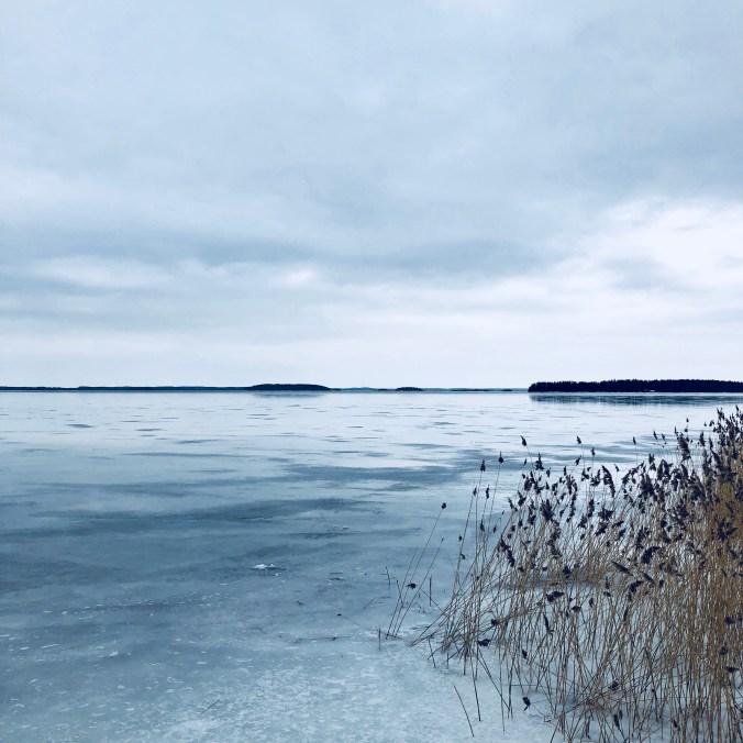 Vinter i Bråviken – isen ligger frusen och på den sitter en och annan pimplare.