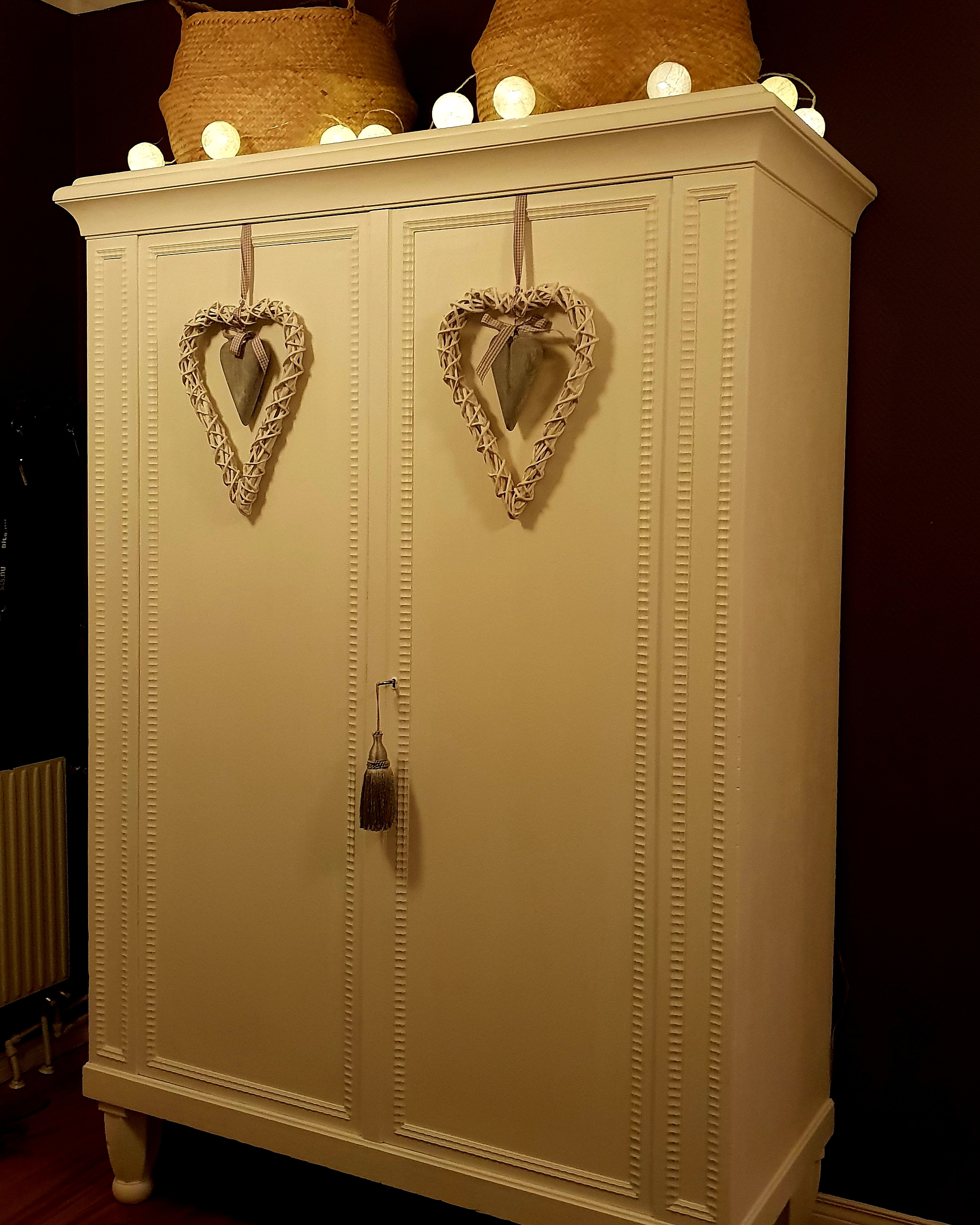 Äntligen händer det grejer i Philips gamla rum, yippeee! En trött vit garderob blev vackert grå ikväll. Tänk vad lite färg kan göra med möbler och annat. Jag hade tänkt att vi skulle riva ut garderoben, men nu är jag galet nöjd att vi har kvar den.