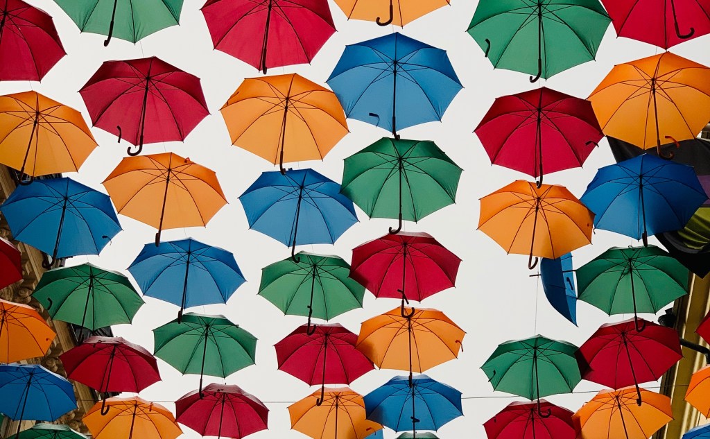 Varmt och ombonat på Drottninggatan- trots regn. Tänk vad lite färg och tyg kan göra skillnad.. The Umbrella project – läs mer.