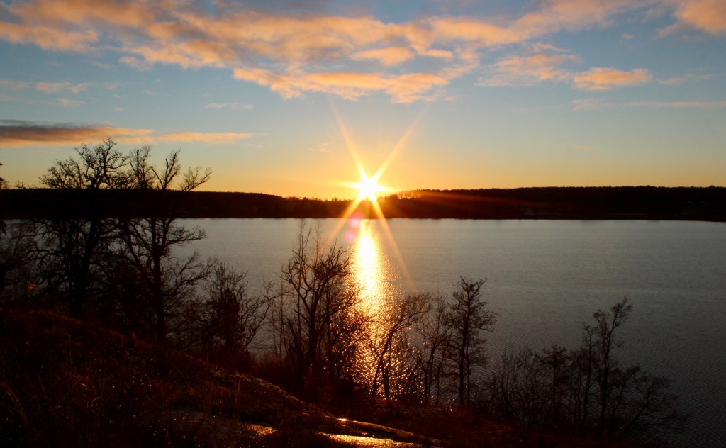 Nu är november snart ett minne blott. Jag räknar ner till den 22 december, när det vänder och blir ljusare – det ser jag fram emot. Annars försöker jag njuta av ljuset när det uppenbarar sig, som idag t ex. solnedgång vid ”badberget”.