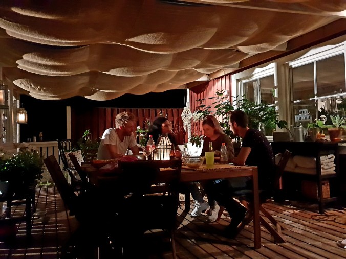 Sen kubbspel hemma med barnen och goa grannar till klockan 2 på natten med bygglampan som belysning. Sommaren är härlig.