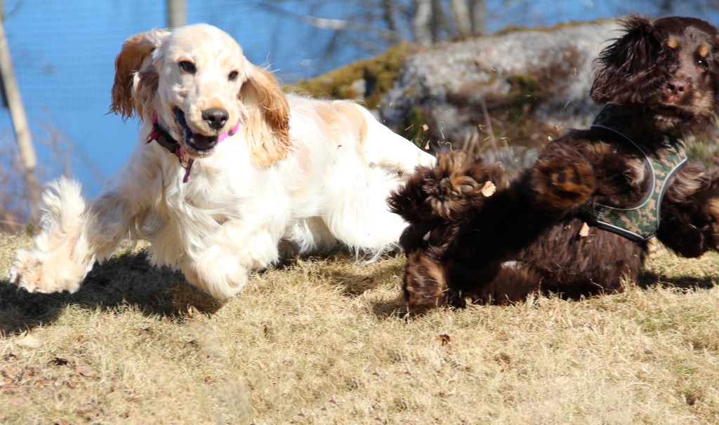 Idag fick Spencer träffa grannens Happy! Två cockerspaniels kan verkligen ha skoj tillsammans!