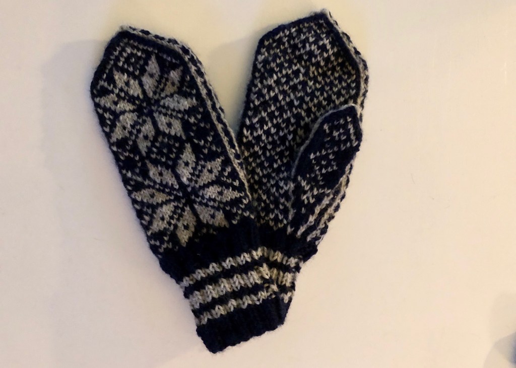 Jag har provat att sticka stjärnvantar efter mönster men har aldrig tyckt att de blev lika vackra som Ebbas. Jag har heller inte fått till rätt storlek.