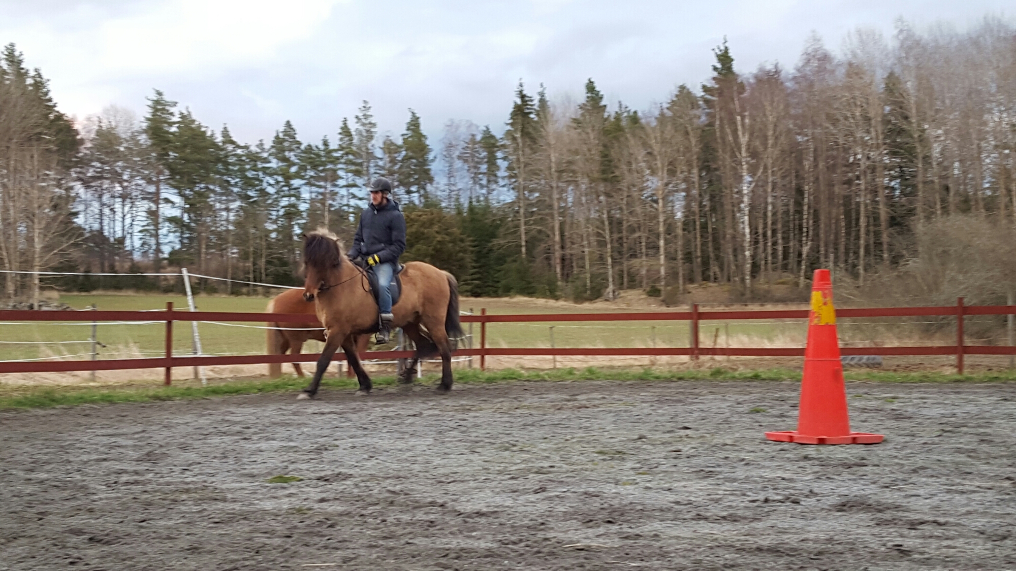 Igår red Pelle Atli och idag var det min tur. Han är så pigg och tillfreds just nu. Tror det blev ett annat lugn när Framtid flyttade. Han är väldigt go med Pelle och mig. Vi skrittade och travade på långa tyglar. Sen galopperade vi en del och töltade.  Idag backade han inte. Bra det.